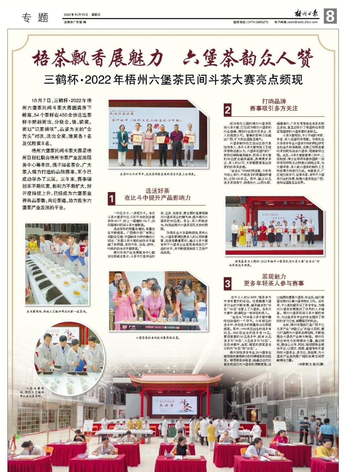圖21:梧州日?qǐng)?bào)社連續(xù)三年舉辦六堡茶民間斗茶大賽(來(lái)源:《梧州日?qǐng)?bào)》2022年10月16日)