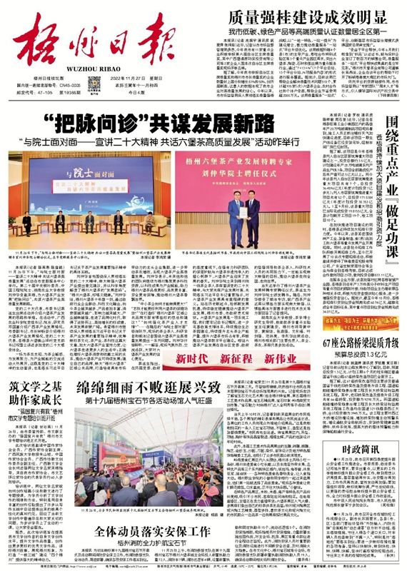 圖20:加強(qiáng)梧州六堡茶產(chǎn)業(yè)發(fā)展的宣傳報(bào)道 (來(lái)源:《梧州日?qǐng)?bào)》2022年12月30日)