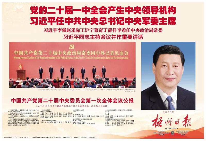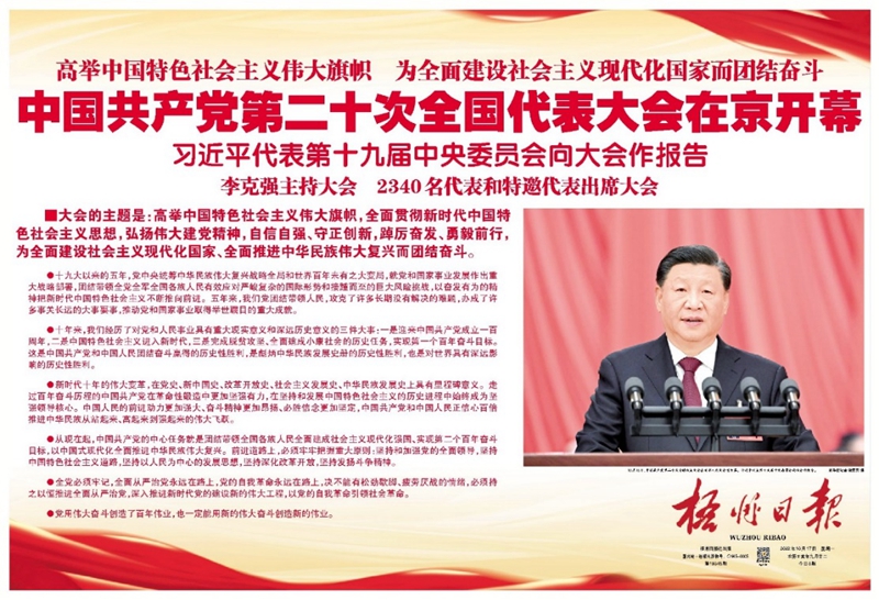 在黨的二十大、黨的二十屆一中全會(huì)召開(kāi)期間,《梧州日?qǐng)?bào)》《西江都市報(bào)》在頭版分別使用連版的篇幅,對(duì)黨的二十大開(kāi)幕、黨的二十屆一中全會(huì)等重要內(nèi)容進(jìn)行專題宣傳,并對(duì)大會(huì)主題等內(nèi)容進(jìn)行集納,形式創(chuàng)新、主題突出、版面大氣,宣傳效果良好。