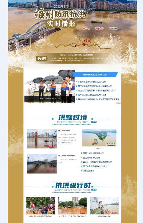 民生關(guān)注熱點(diǎn)回應(yīng)群眾關(guān)切,2022年汛期,梧州日?qǐng)?bào)社全媒體記者奔赴防汛抗洪一線采訪,除了在紙媒、新媒體平臺(tái)及時(shí)報(bào)道工作動(dòng)態(tài)、防汛抗洪報(bào)道外,還開(kāi)啟實(shí)時(shí)直播欄目《梧州防汛抗洪實(shí)時(shí)播報(bào)》,持續(xù)向公眾發(fā)布洪水水位、汛情公告、暴雨防御警報(bào)等動(dòng)態(tài)信息,直播頁(yè)面閱讀量達(dá)到17.54萬(wàn)人次。疫情防控報(bào)道發(fā)布權(quán)威聲音,面對(duì)梧州市“9·5”新冠肺炎疫情,梧州日?qǐng)?bào)社全媒體報(bào)道力量迅速集結(jié)行動(dòng),第一時(shí)間發(fā)布黨委和政府的決策部署、防控措施及相關(guān)通告,相關(guān)稿件、圖文視頻達(dá)780多篇(條)次,閱讀(播放)量達(dá)1990萬(wàn)人次。