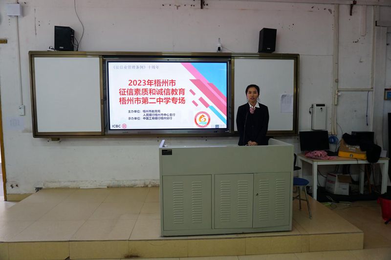 圖2、圖3:梧州分行到梧州市第二中學為同學們普及征信知識和開展誠信教育。(甘敏瑜 攝) 作者:甘敏瑜 張雅琳 |