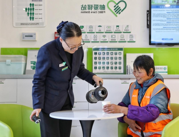 如果你手機沒電了,口渴了沒地方喝水,奔波累了沒地方休息……你可以就近尋找中國郵政儲蓄銀行分散在大街小巷的營業(yè)網(wǎng)點,這里的“郵愛驛站”——是你的第二個“家”。 為切實履行社會責任,充分展現(xiàn)大行擔當,郵儲銀行在營業(yè)網(wǎng)點積極建設(shè)“郵愛驛站”,打造有溫度可持續(xù)的愛心公益平臺,為有需要的社會公眾提供便捷、溫暖、貼心的愛心服務(wù)。截至2023年12月,郵儲銀行累計建設(shè)郵愛驛站4861處,實現(xiàn)省級和地市級100%覆蓋。 戶外勞動者的暖心港灣 依托各地“郵愛驛站”,郵儲銀行切實有效解決廣大戶外勞動者就餐、飲水、休息等實際困難,讓更多戶外勞動者感受到溫暖和關(guān)愛,助力營造全社會尊重勞動、關(guān)愛勞動者的良好氛圍。 張先生是一名快遞員,幾年前從家鄉(xiāng)來到湖北省隨州市,每天早出晚歸,忙著卸貨、分揀包裹,穿梭于大街小巷收發(fā)快遞。網(wǎng)購節(jié)期間,張先生每天的工作量倍增,夏日的午后是一天最熱的時候,郵儲銀行當?shù)鼐W(wǎng)點的“郵愛驛站”就成了他納涼午休的好去處。 “干我們這行的總是在路上,以前送件累了,就隨便找個陰涼處歇歇腳,現(xiàn)在有了‘郵愛驛站’,中午來納涼、加熱飯菜,順便給手機充電,很方便!”張先生說。 郵儲銀行隨州市分行在轄內(nèi)營業(yè)網(wǎng)點建設(shè)的“郵愛驛站”,配備飲水機、微波爐、醫(yī)藥箱、雨傘等多種便民設(shè)施,為環(huán)衛(wèi)工人、快遞小哥、外賣員等戶外勞動者及新市民等客戶群體提供關(guān)愛服務(wù),成為“冷可取暖、熱可納涼、渴可飲水、累可歇腳、雨可棲身”的服務(wù)專區(qū)。 在江蘇,常常會看到戶外勞動者走進郵儲銀行營業(yè)網(wǎng)點“郵愛驛站”。 “我們沒想到能有這樣的地方,能讓我們天冷了喝點熱水,天熱了避避太陽,下雨了躲躲雨,這兒啊,就是我們的小家。”環(huán)衛(wèi)工人說。