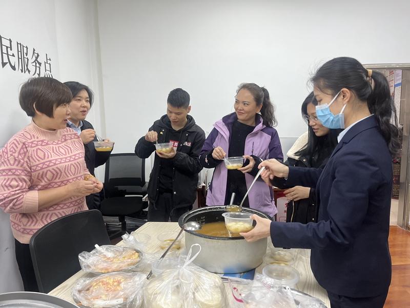 “餃子湯圓出鍋,吃餃子湯圓咯……”一聲聲吆喝聲傳來,一片歡樂熱鬧的景象。2024年2月23日,農歷正月十四,郵儲銀行梧州市分行各級機構開展“龍騰四海 歡樂鬧元宵”活動,員工們齊聚一堂,歡樂鬧元宵。