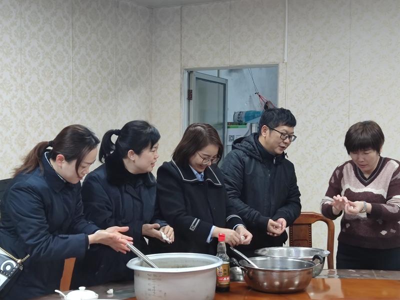 郵儲銀行蒙山縣城南支行員工在包餃子。