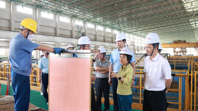 參觀生產車間 參觀結束后,政銀企圍繞“匯小二”服務方案開展了座談。黃育玲介紹本次到園區及企業調研的目的,了解企業目前生產經營面臨困難和解決問題的訴求,也希望作為梧州市龍頭企業的金升銅業持續為梧州市實體經濟發展作出應有貢獻。王樂振對調研組一行的到來表示歡迎,并介紹企業的發展歷程,對梧州市政府和金融部門的支持表示肯定。李堅介紹了臨港經濟循環園區的基本情況和“千億園區”計劃,園區將積極支持綠色經濟發展做大做精做透。
