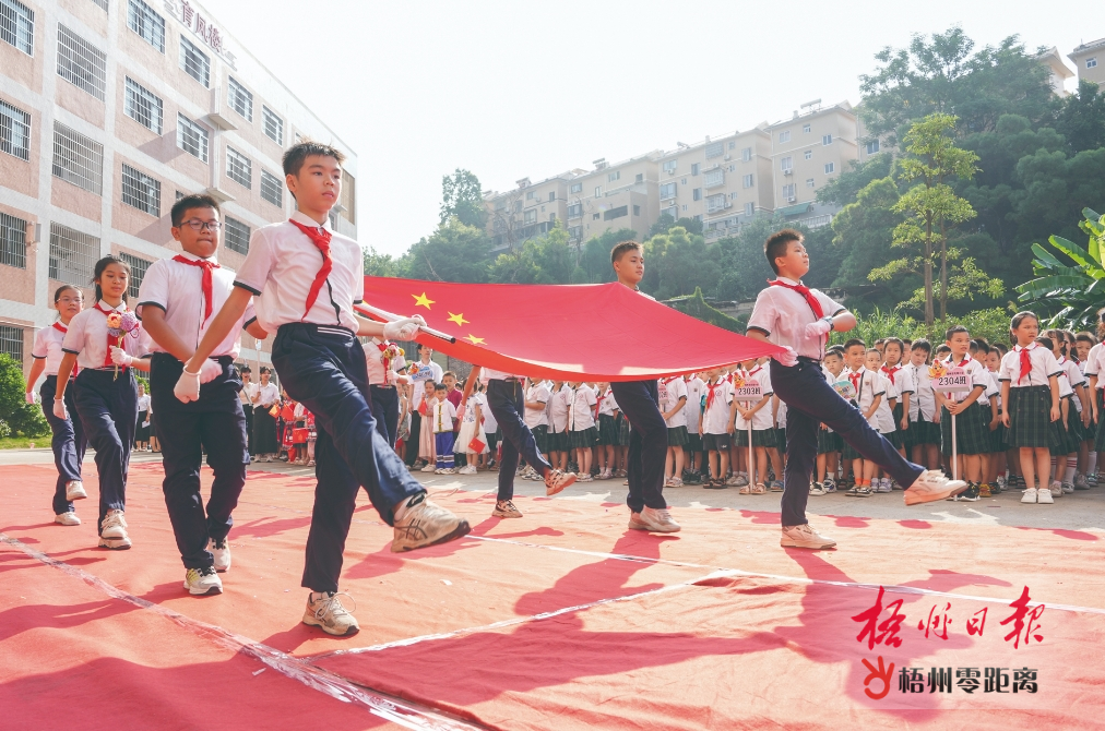 9月2日,鳳翔小學(xué)在開(kāi)學(xué)典禮上舉行升旗儀式。梧州日?qǐng)?bào)記者 楊揚(yáng) 攝
