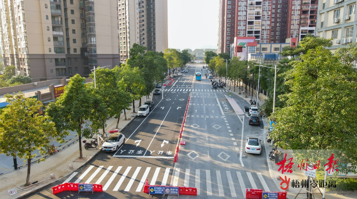 10月11日,瑞湖路的排水系統改造提升建設工程已經完工,地面上劃設了新的白色交通標線。梧州日報記者 李燦明 攝