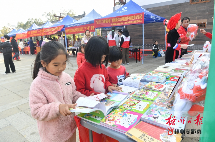 1月21日,在活動現場,孩子們津津有味地翻閱新圖書。梧州日報記者 李鴻榮 攝