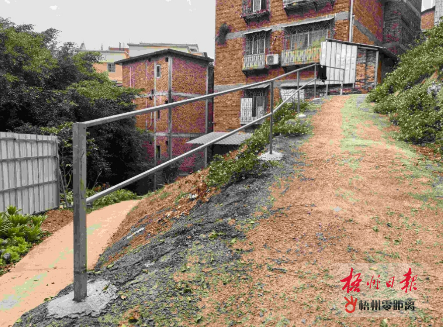 梧州零距離網-梧州日報訊(記者 朱元冬 通訊員 黎海平 何秋紅)近期,長洲區龍山路一私人住宅聚集的靠山區域,在一段十幾米長、較為險陡的斜坡修建了一條用鋼管做成的簡易欄桿。長洲區大塘街道龍山社區相關負責人表示,這個斜坡的扶手欄桿是附近居民出錢建設,既方便了自己,也方便了他人。