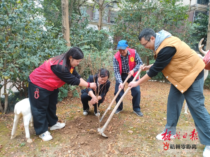 梧州零距離網-梧州日報訊 陽春三月,正是植樹添綠、播種希望的好時節。3月10日,萬秀區城南街道云龍社區聯合“雙報到”單位、共駐共建單位和小區物業公司開展植樹節活動。