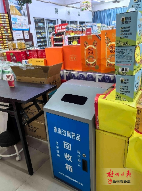 在長洲區(qū)吉塘路6號的高濟百姓大藥房金城藥房,放置有一個家庭過期藥品回收箱。 記者 朱元冬 攝
