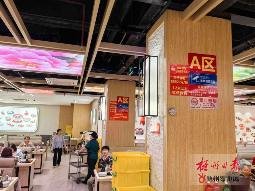 萬秀區西江三路一酒樓大廳也是在多處墻體懸掛著“禁止吸煙”的牌子,但很多食客在吸煙,與他們身旁懸掛的禁煙標語牌形成強烈反差。記者觀察,該酒樓內吸煙的食客多是中老年男士。記者在其中一張餐桌落座后,向服務員提出鄰桌有人吸煙可否幫忙勸導,服務員表示可以幫助記者更換就餐位置。