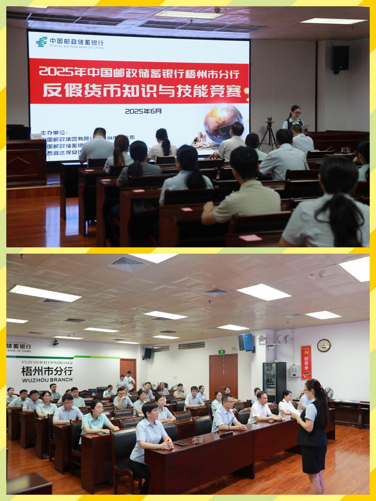 為進一步提升員工反假貨幣專業素養,強化金融服務質量與風險防控意識,維護貨幣流通秩序,2025年6月11日上午,郵政集團梧州市分公司、郵儲銀行梧州市分行、廣西鑫達梧州市分公司聯合舉辦了2025年中國郵政儲蓄銀行梧州市分行反假貨幣知識與技能競賽。本次競賽吸引了來自轄內各級機構眾多員工踴躍參與。