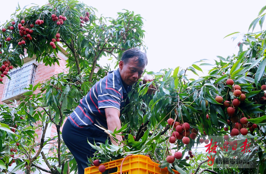 走進健良村,映入眼簾的是村道兩旁一棵棵荔枝樹,樹上掛著的果實如同精巧的小燈籠,令人望之生津。在村民程耀武的荔枝園里,數名果農在郁郁蔥蔥的荔枝林間穿梭,他們手指翻飛間,一串串荔枝落入筐中。“今年荔枝園的產量比去年增長約三成,我們種植的兩畝荔枝林主要是黑葉荔枝和禾荔,產出荔枝約3000公斤,采摘期預計持續一個月。”程耀武說。