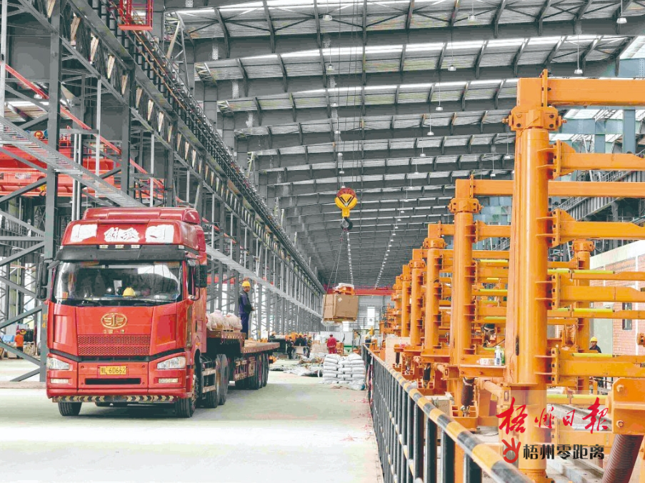 7月1日,位于粵桂合作試驗(yàn)區(qū)高新片區(qū)的弘毅新材料年產(chǎn)100萬(wàn)噸高端不銹鋼制品精深加工項(xiàng)目的車間里,灰色鋼鐵架構(gòu)撐起的寬敞空間中,亮眼的橘紅色設(shè)備如巨人列陣,靜靜等待激活。一輛滿載著生產(chǎn)設(shè)備的紅色卡車早已就位,工人頭戴頭盔,手持遙控器,操作著高懸半空的天車,將剛剛運(yùn)抵廠區(qū)的生產(chǎn)設(shè)備配件穩(wěn)妥送抵安裝位。