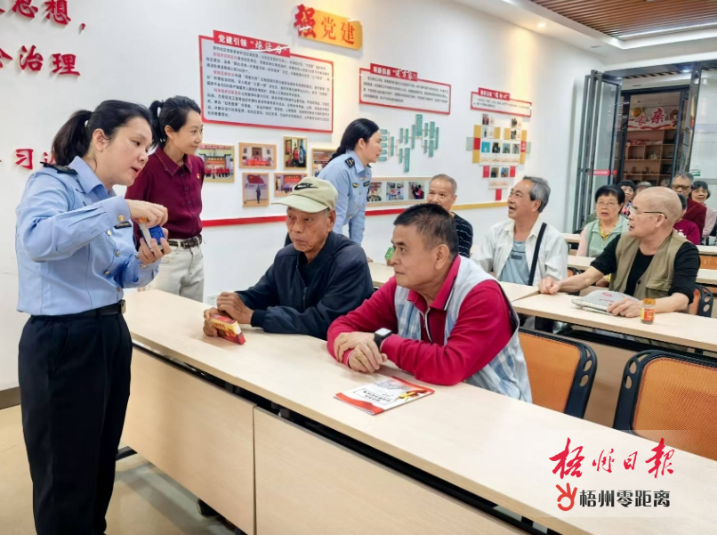 今年以來,市市場監管局執法人員多次走進社區開展特殊食品普法宣傳。圖為近日執法人員到萬秀區城南街道南中社區開展“守護‘一老一小’食品安全”主題普法活動 ,通過實物對比展示,生動講解保健食品“藍帽子”標志特征,保障老年人消費安全。邱碧英 攝