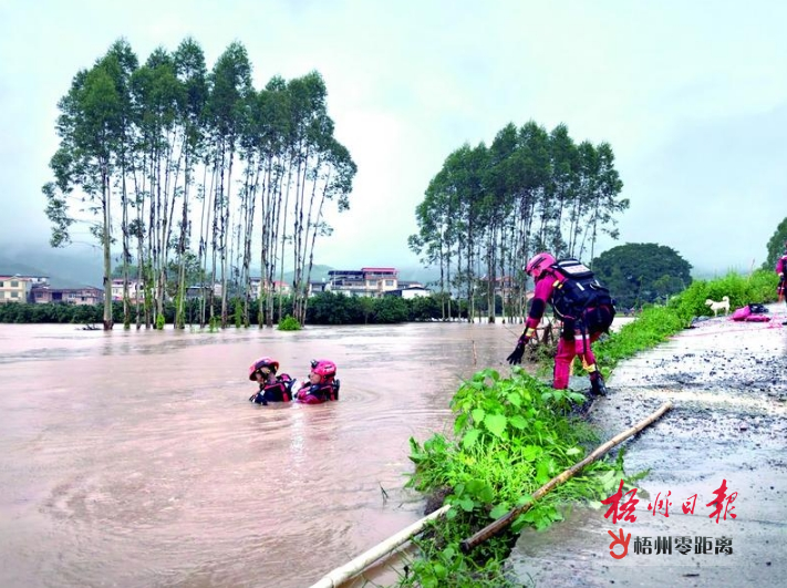 梧州零距離網-梧州日報訊(記者 黃子萃 通訊員 韋春梅 覃威華)“你好,新圩鎮謝村村委附近有1名群眾因河水上漲被困,急需救助。”8月5日18時許,市消防救援支隊指揮中心接到群眾打來的求助電話。接報后,該中心立即調派永安消防救援站1個搶險編隊,2輛消防車、14名消防救援人員趕赴現場救援。