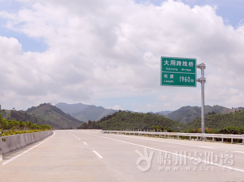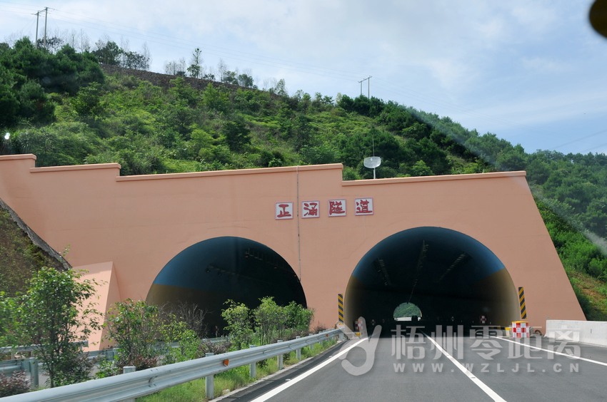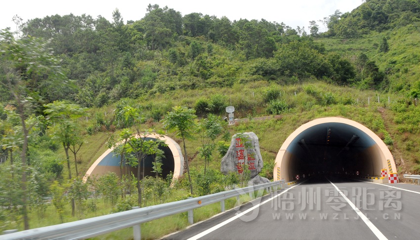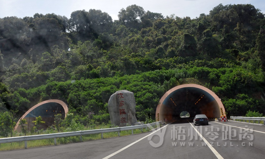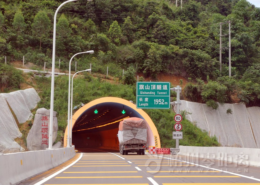 - 旗山頂隧道,長度1952米,距離蒼梧收費站68.5公里,連灘7公里、云浮47公里、廣州187公里