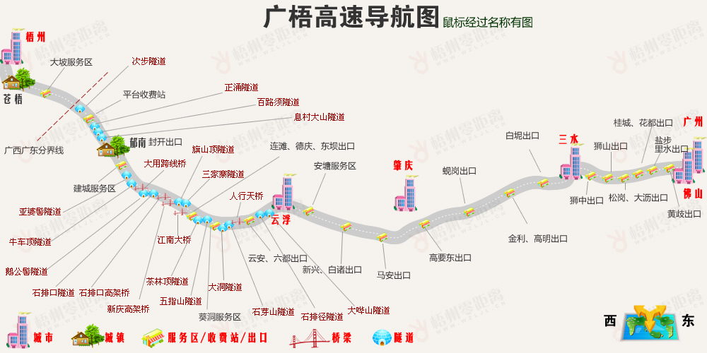 - 一出蒼梧收費站,往左邊郁南廣州方向,往右邊是茂名、南寧、賀州、桂林方向