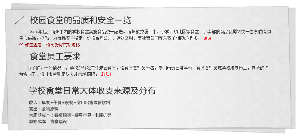 但“菜價不漲,工資要漲”,近年來,用人成本的大幅度提高,使得高校食堂面臨招工難的問題。2011年3月,有群眾在人民網的“地方領導留言板”上反映梧州一中食堂工作人員待遇過低的問題。